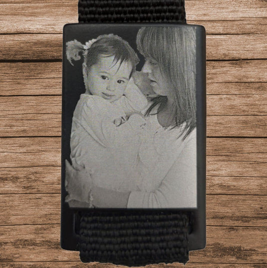 Schlüsselanhänger schwarz mit persönlicher Fotogravur